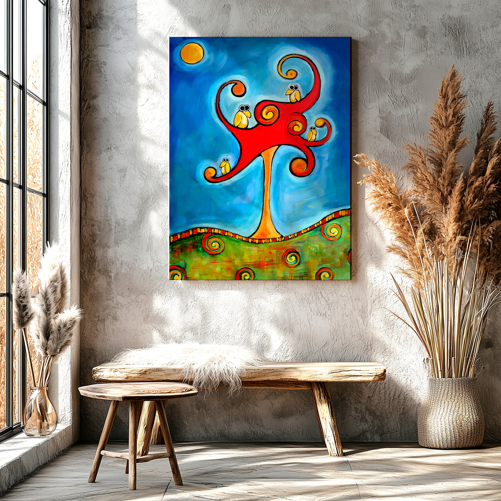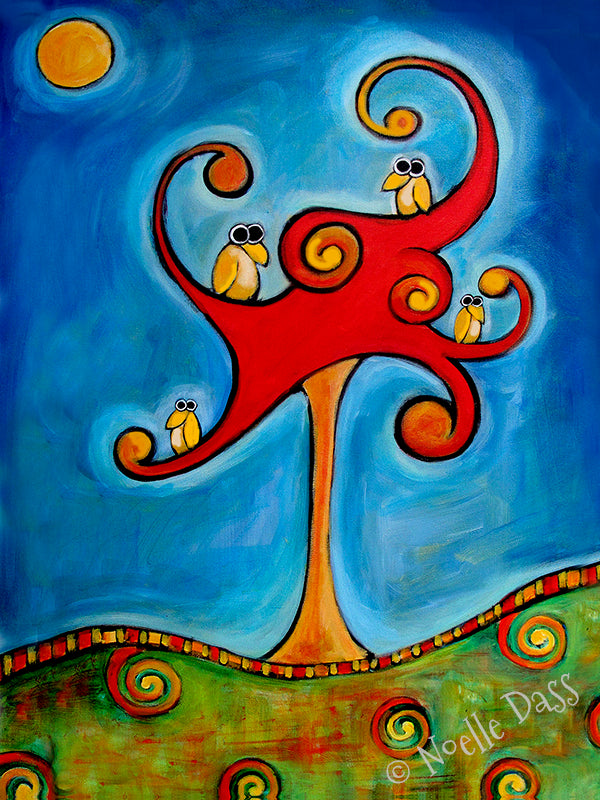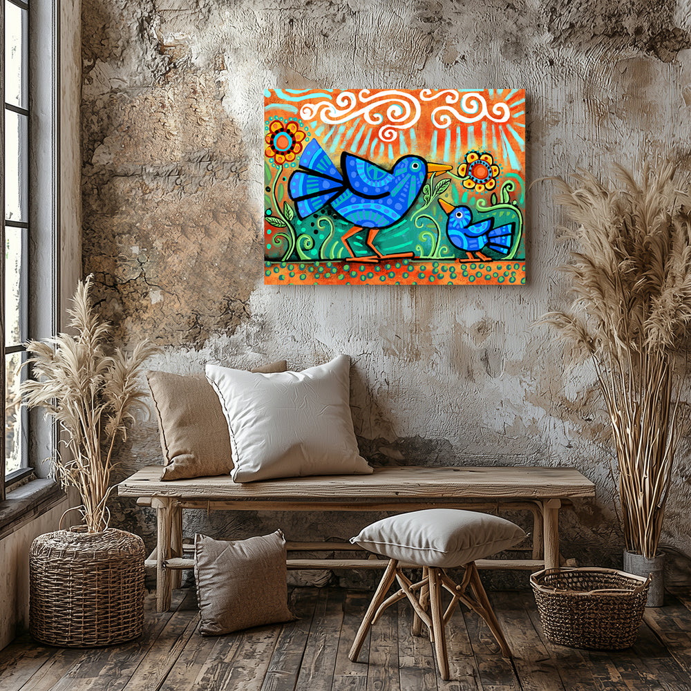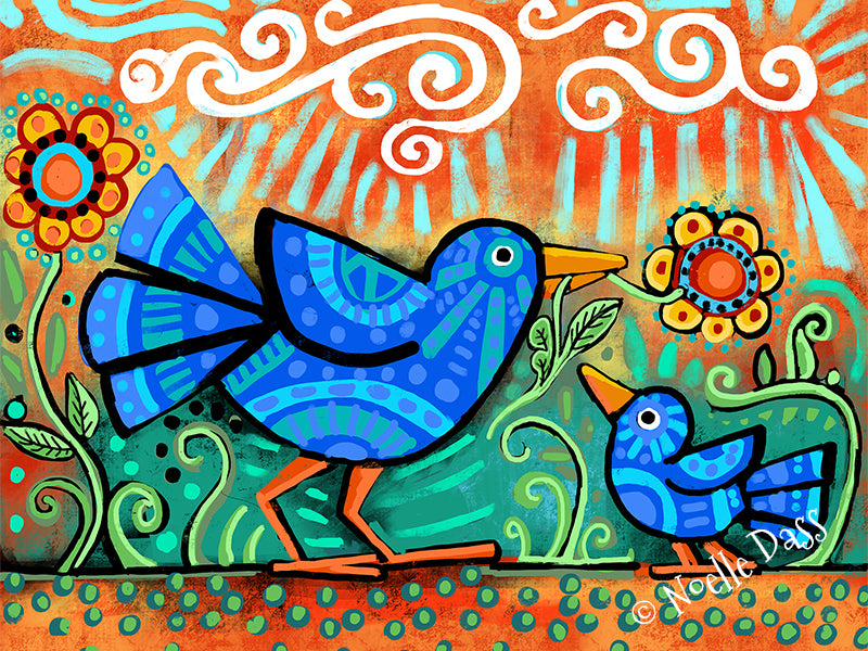 Mama and Baby Bird Folk Art
