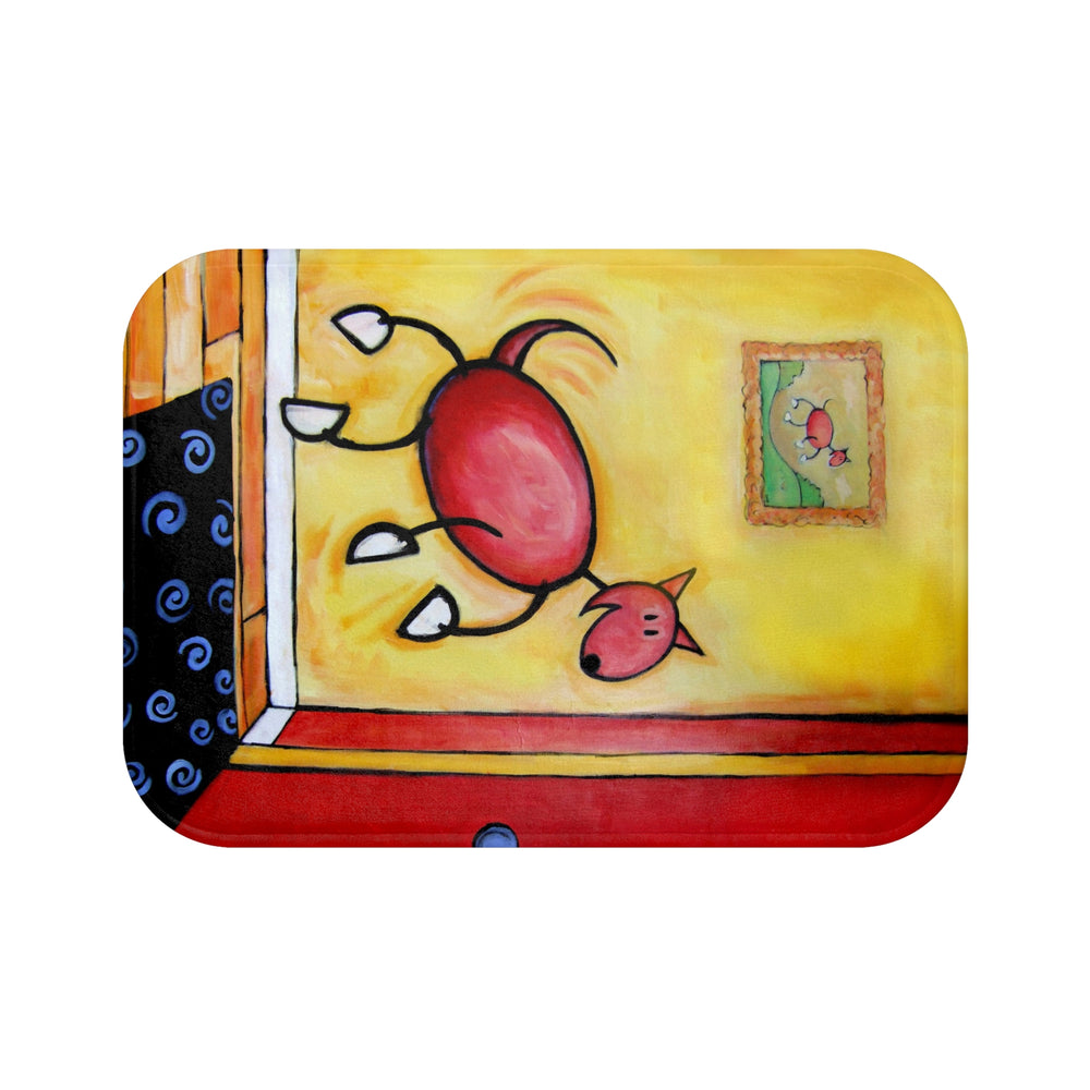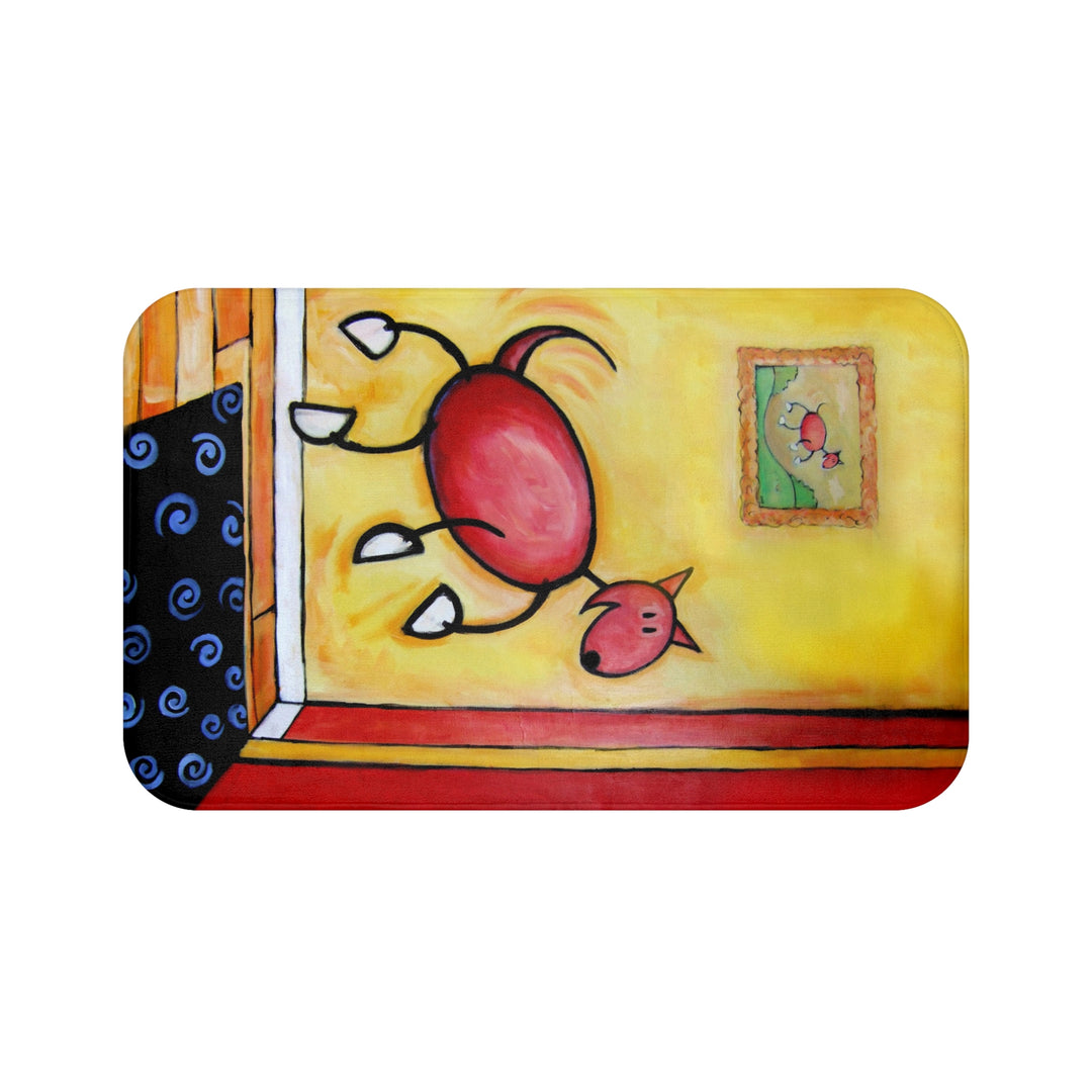 Leap of Faith dog chasing ball over water Plush Bath Mat