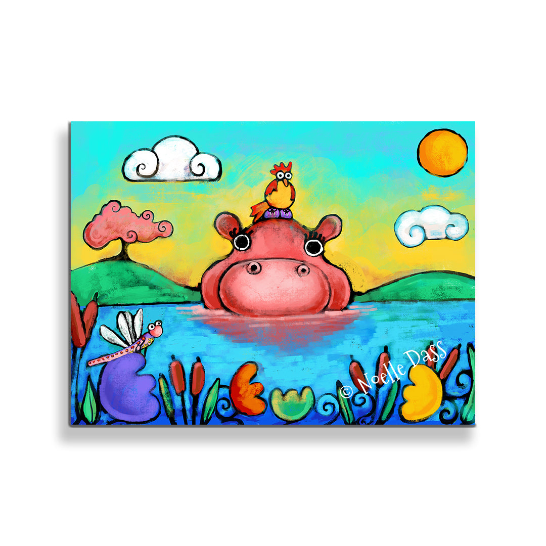 Hippo & Friends Paper / 11x14 with white border/image is 8x10 / Unframed